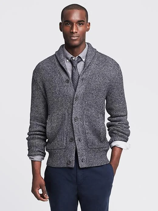 Layering is a great way to overcome the wrath of winter, but too many layers can transform you into the real-life Michelin man. Some days, it may get too cold for the all-purpose cardigan, forcing you to break out the heavy attire. Enter the chunky cardigan. While maintaining the fashionable stylings of the all-purpose cardigan, the added thickness and warmth of the chunky cardigan is ideal for those times when it’s too cold to be outside, but you have to be. Banana Republic’s navy shawl-collar cardigan above is a prime example of combining form and function . All sizes are available as of posting. Use the code BRTIME to get 40% off. Other chunky cardigans we recommend include the J.Crew Italian Wool Shawl-Collar Cardigan ($128.00) and the Charles Tyrwhitt Grey Shawl Collar Cardigan ($110.00).